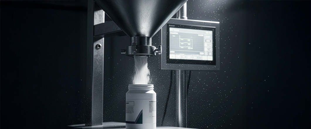 O princípio operacional da VSF-30S/B baseia-se no envase controlado por rosca sem-fim com balança integrada. O operador posiciona o frasco, inicia o ciclo e o sistema realiza o enchimento com monitoramento contínuo do peso, garantindo precisão e repetibilidade até a finalização do processo.